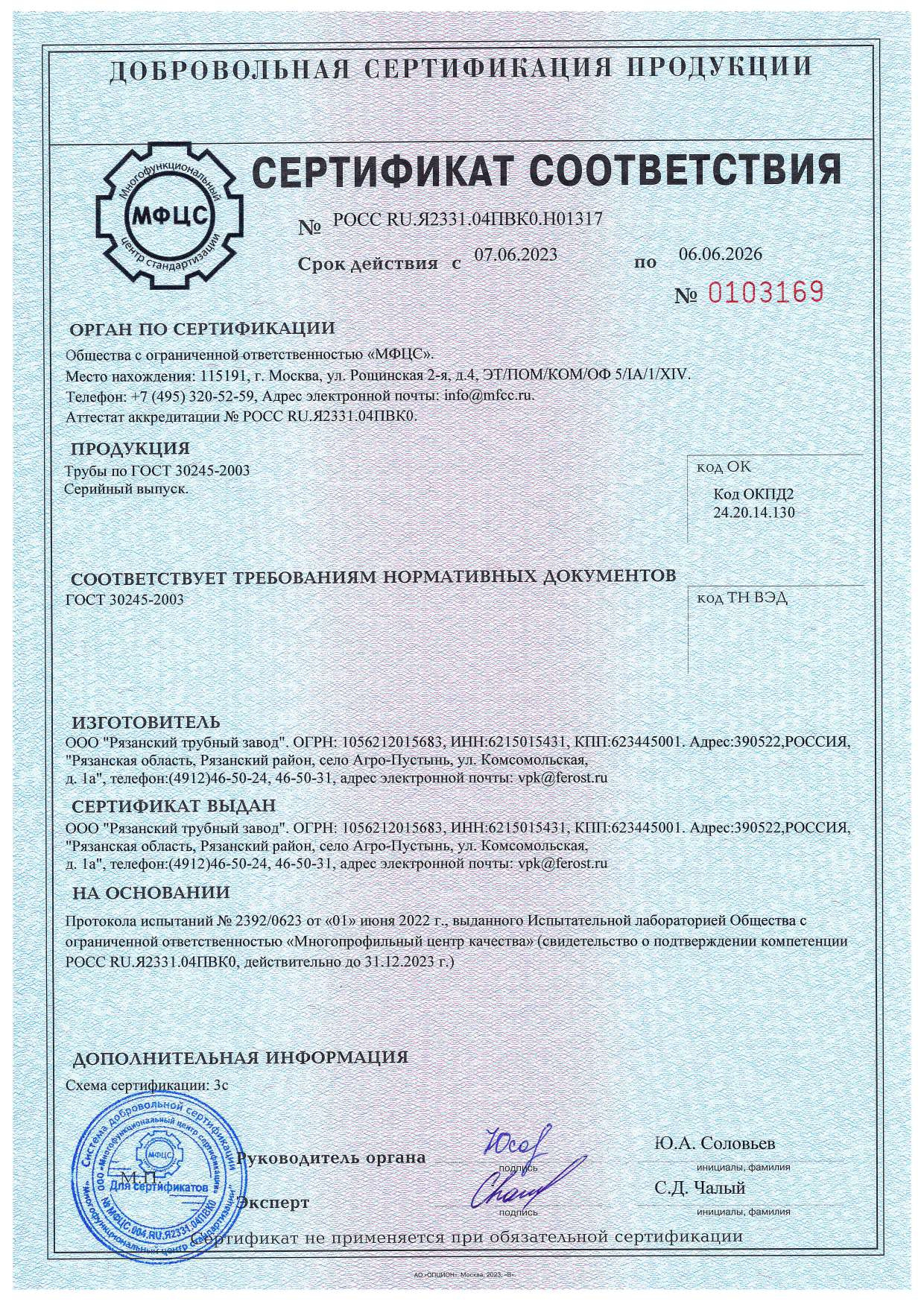 «Рязанский трубный завод» занимается изготовлением трубопроката круглого, прямоугольного, квадратного и других типов сечений различных размеров и толщины стенок.
